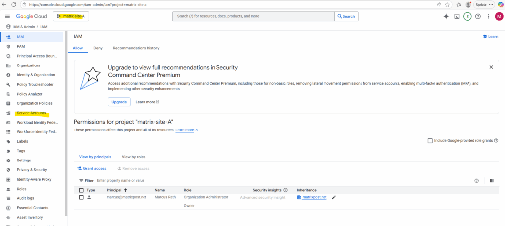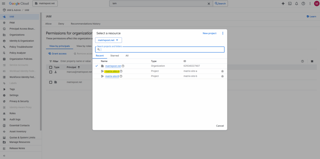 I will use here my existing project matrix-site-a which I was using in my post about cross-hub connectivity in Google Cloud.
