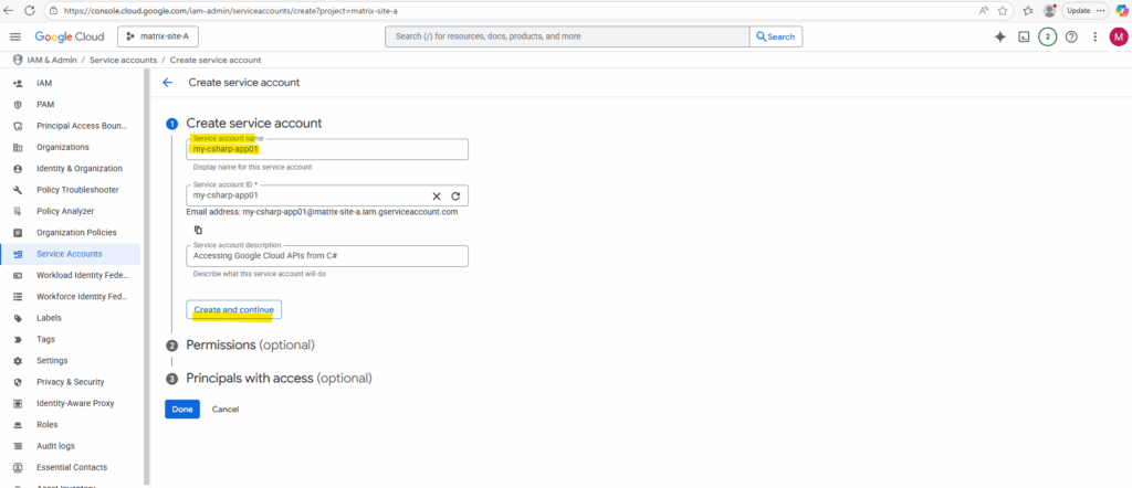 We will see how to create and configure the Service Account in the Google Cloud Console, generate credentials, and use the Google.Apis.Auth and Google.Cloud.* client libraries to securely connect and perform API operations, without hardcoding credentials or user interaction.