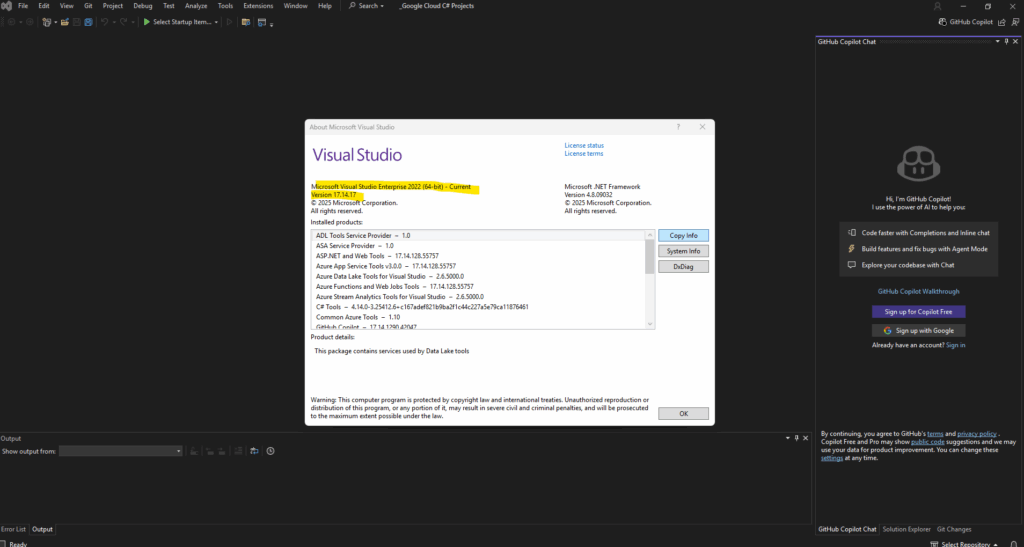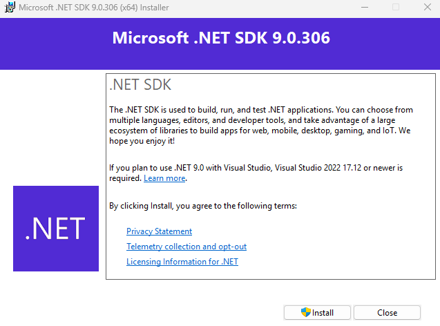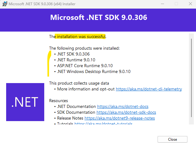 On my computer the latest .NET version which is currently installed is .NET 7.0. The currently latest version as of October 2025 is .NET 9 and preview .NET 10.