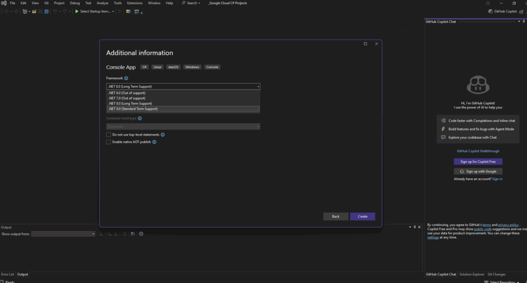 So, when you see templates like “Console App (C# Linux, macOS, Windows)”, they actually refer to the modern, cross-platform .NET, the successor of .NET Core.
