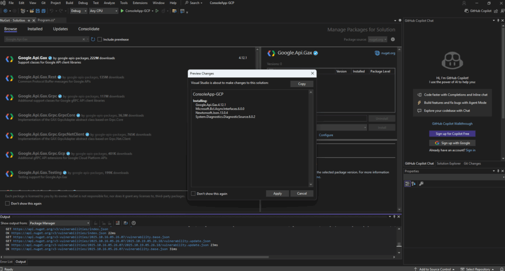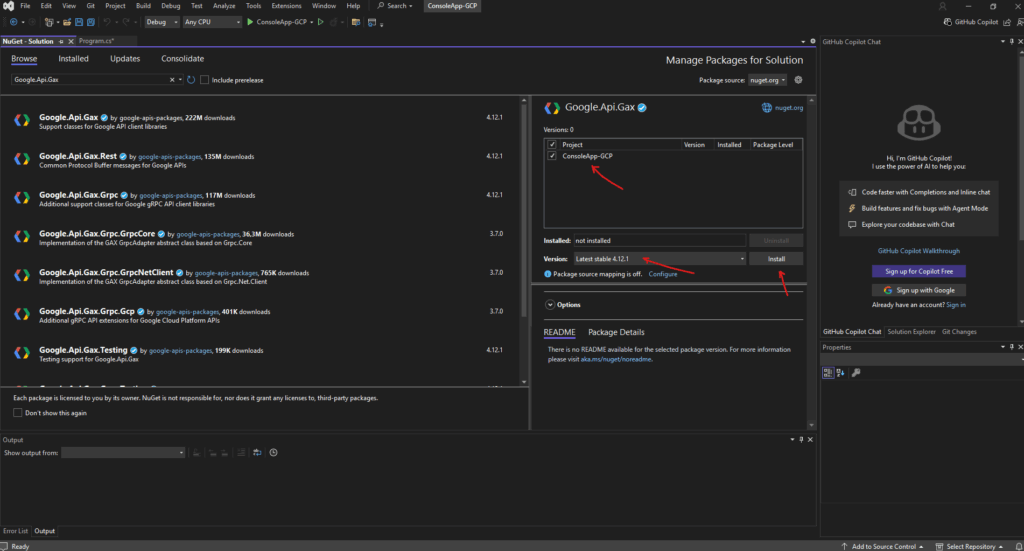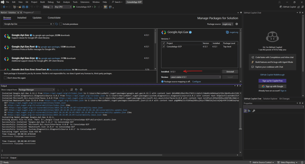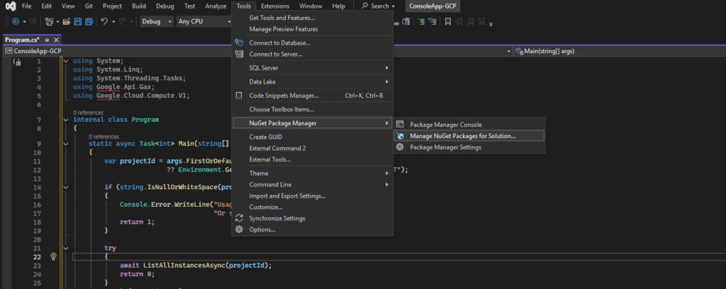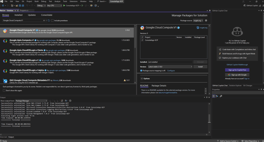 Next we also need to install the Google.Cloud.Compute.V1 package.