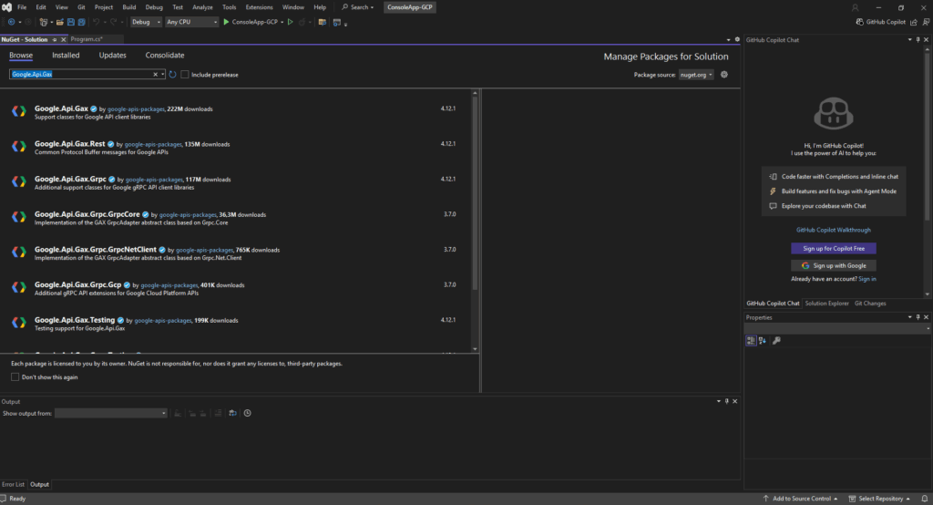 I will use below the NuGet Package Manager to first search for our required .NET libraries and then to install them.
