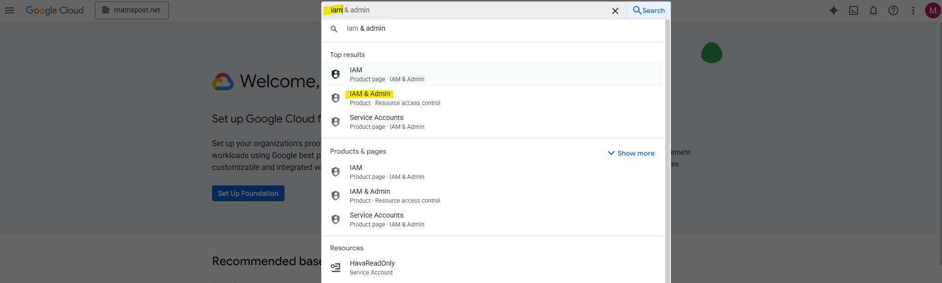 Within the selected project, navigate to IAM & Admin -> Service Accounts.