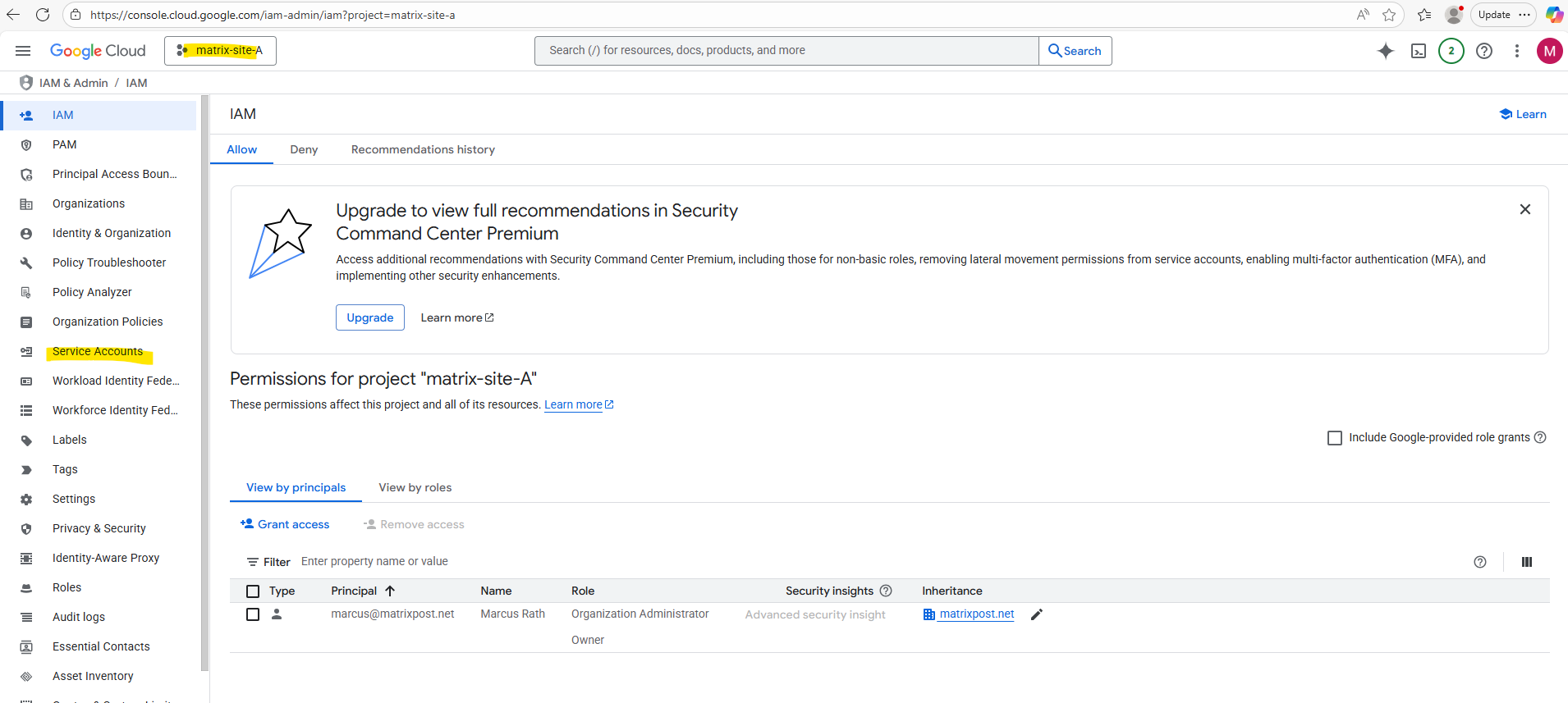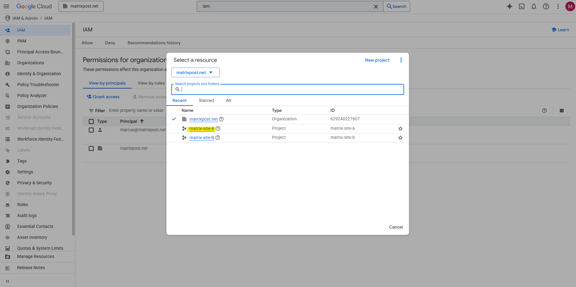 I will use here my existing project matrix-site-a which I was using in my post about cross-hub connectivity in Google Cloud.