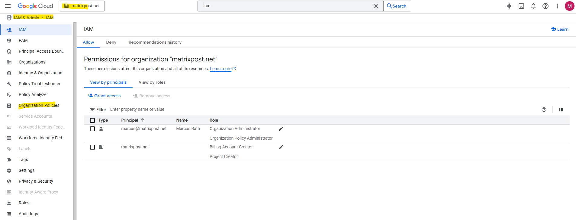 constraints/iam.disableServiceAccountCreationpolicy in Google Cloud IAM, we’ll need at minimum the following IAM role: roles/orgpolicy.policyAdminSource: https://cloud.google.com/iam/docs/troubleshoot-org-policies