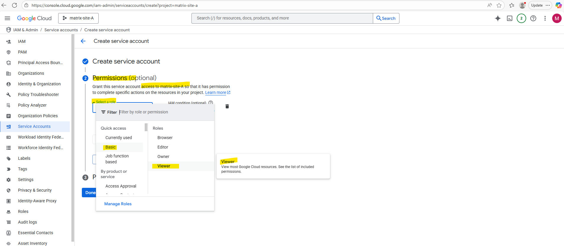 To create new service accounts we need the “roles/iam.serviceAccountCreator” IAM role on the project.