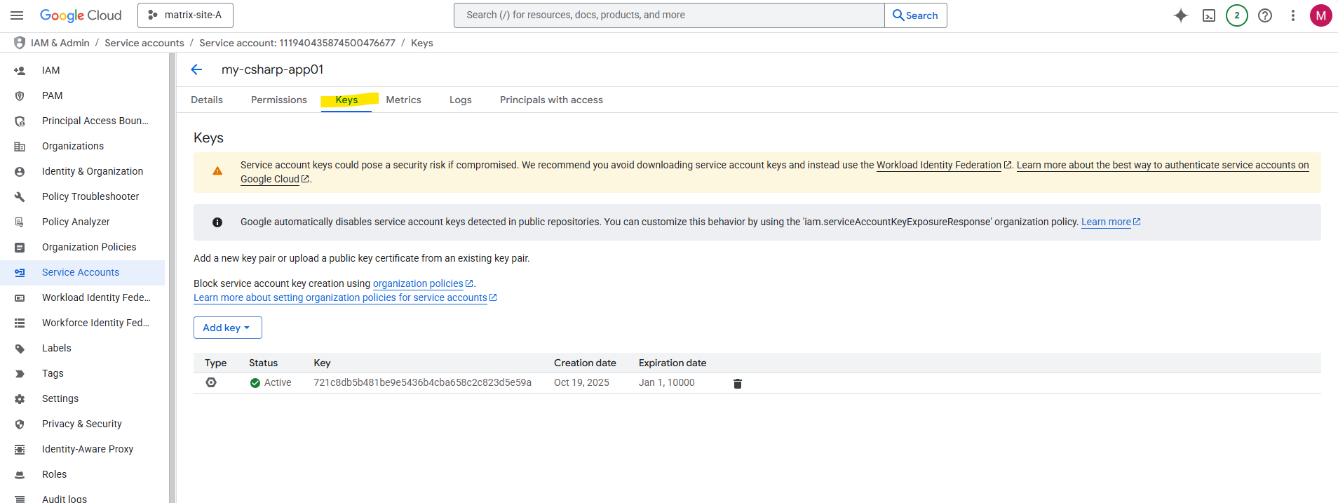 We recommend you avoid downloading service account keys and instead use the Workload Identity Federation .