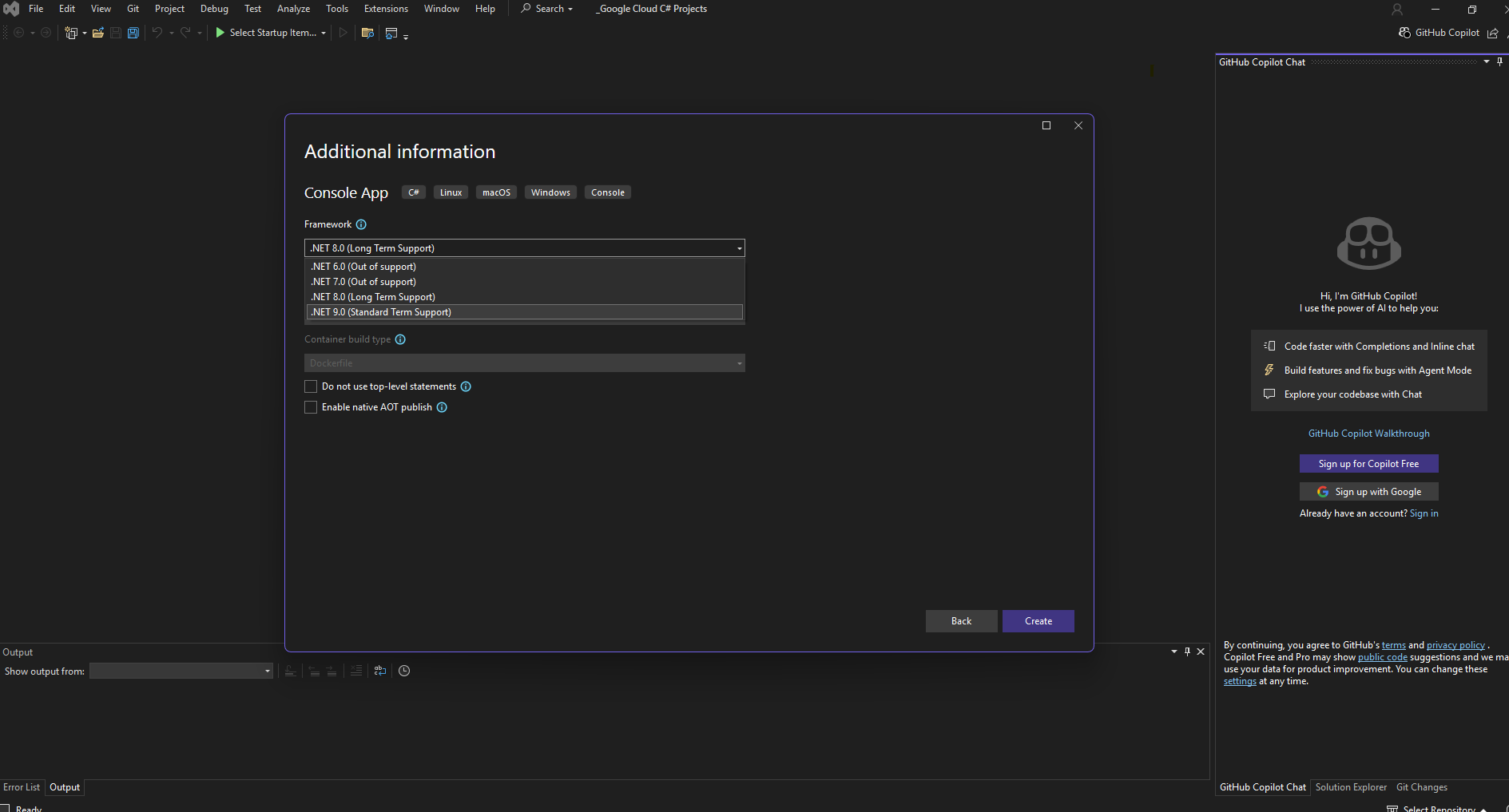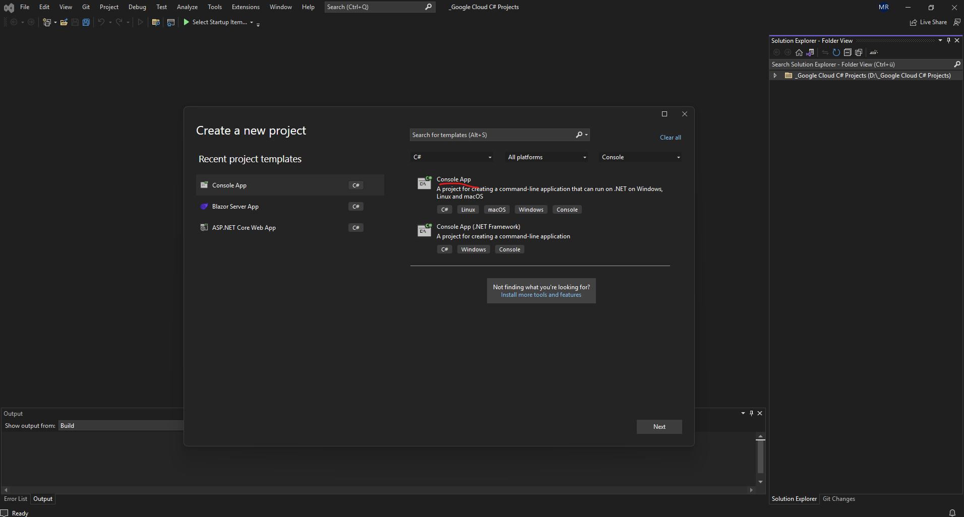 So, when you see templates like “Console App (C# Linux, macOS, Windows)”, they actually refer to the modern, cross-platform .NET, the successor of .NET Core.