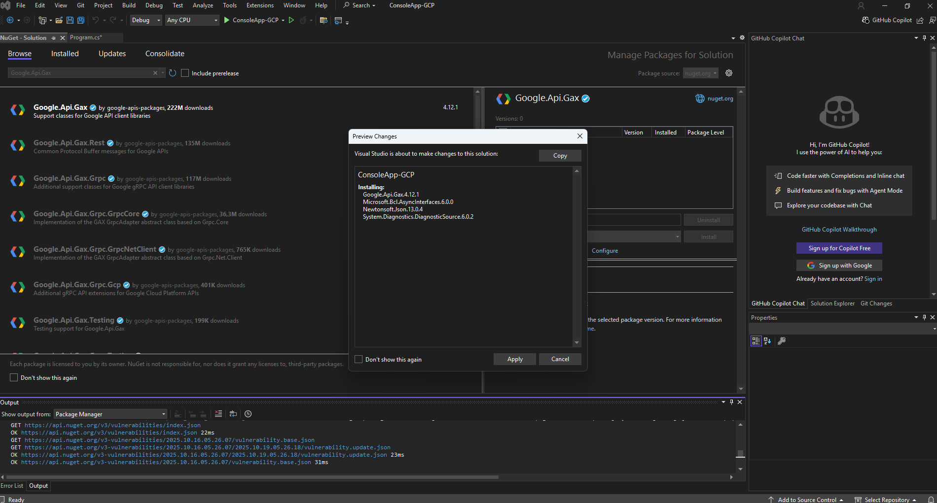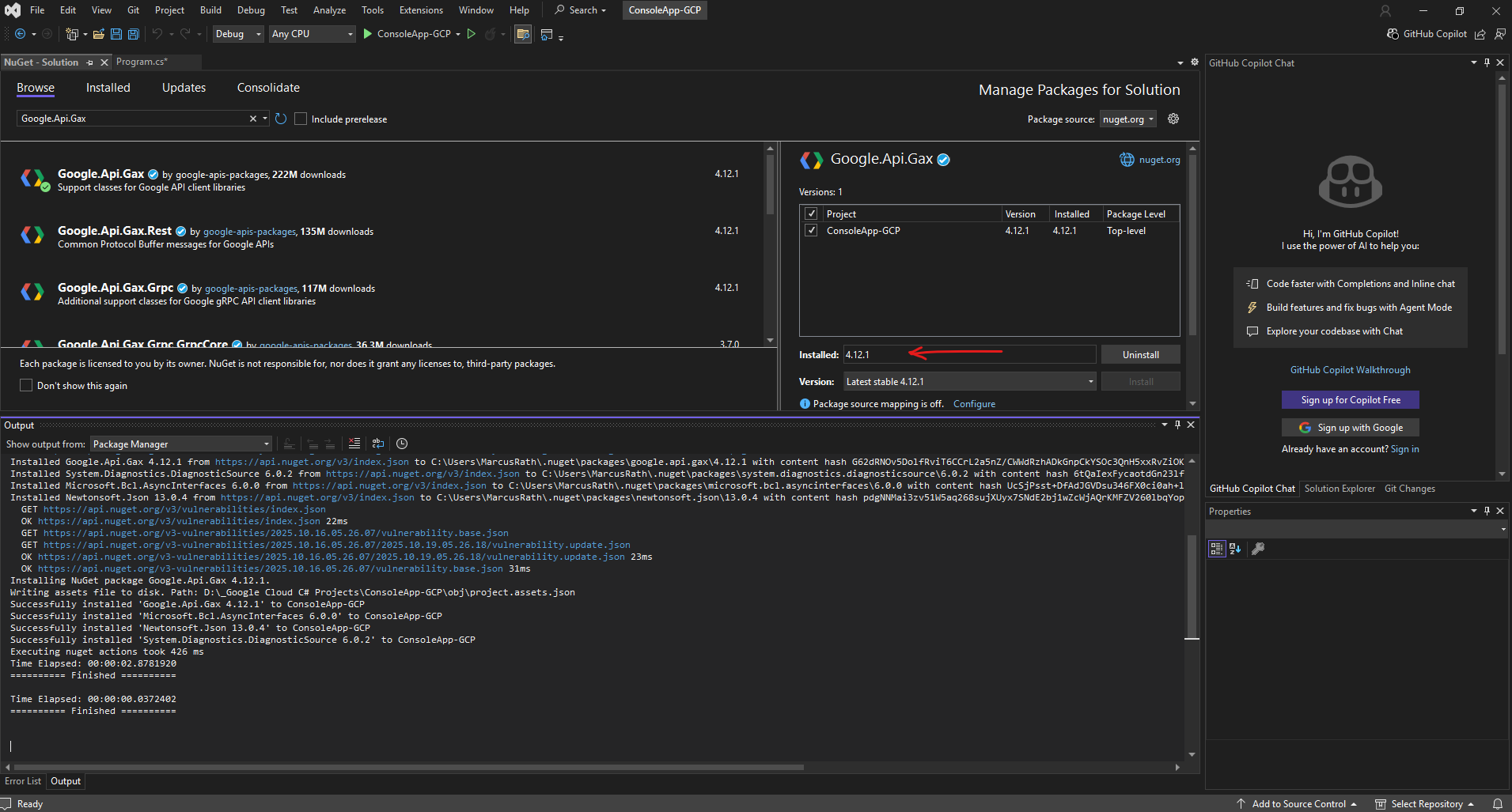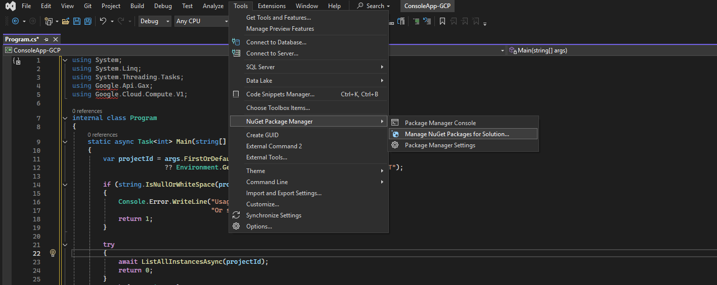 Next we also need to install the Google.Cloud.Compute.V1 package.